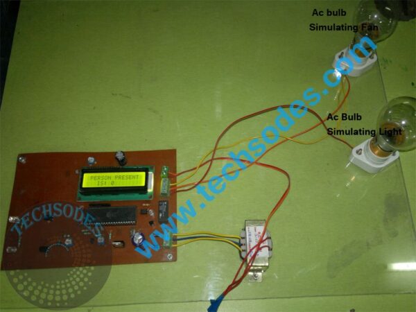 Whenever a person enters the room, the count is incremented and displayed on a 16×2 LCD module. When someone leaves, the count is decremented. If the count reaches zero (room is empty), the system automatically turns OFF the connected load using a relay. When there is at least one person in the room, the system switches ON the load again.