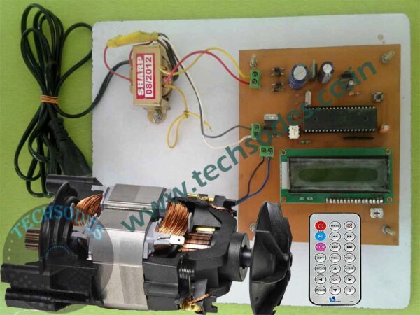 This system utilizes an 8051 microcontroller to receive input from an IR remote control and adjust the speed of an induction motor accordingly. The motor?s speed is displayed on a 16×2 LCD screen, providing real-time feedback to the user. The microcontroller controls the motor’s speed through a TRIAC BT136, driven by the opto-isolator MOC3021, allowing phase-angle control of the AC motor.